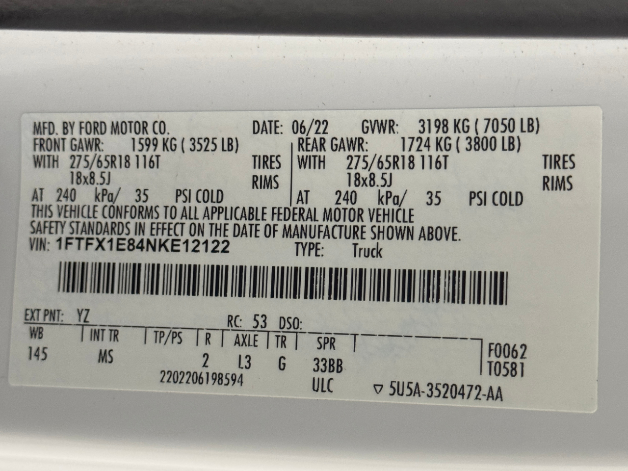 VIN: 1FTFX1E84NKE12122